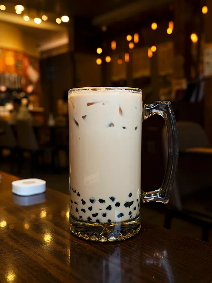 For drinks, the Hokkaido Milk Tea with pearls was creamy and gently sweet, and the Yuzu Pine Breeze had a citrus profile that was refreshing with the meal.