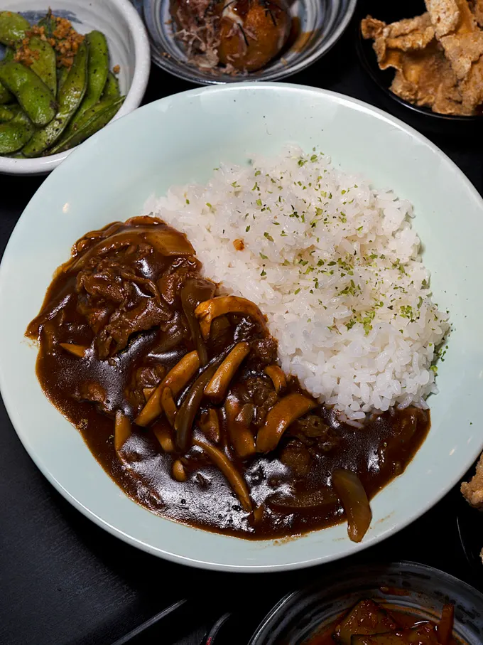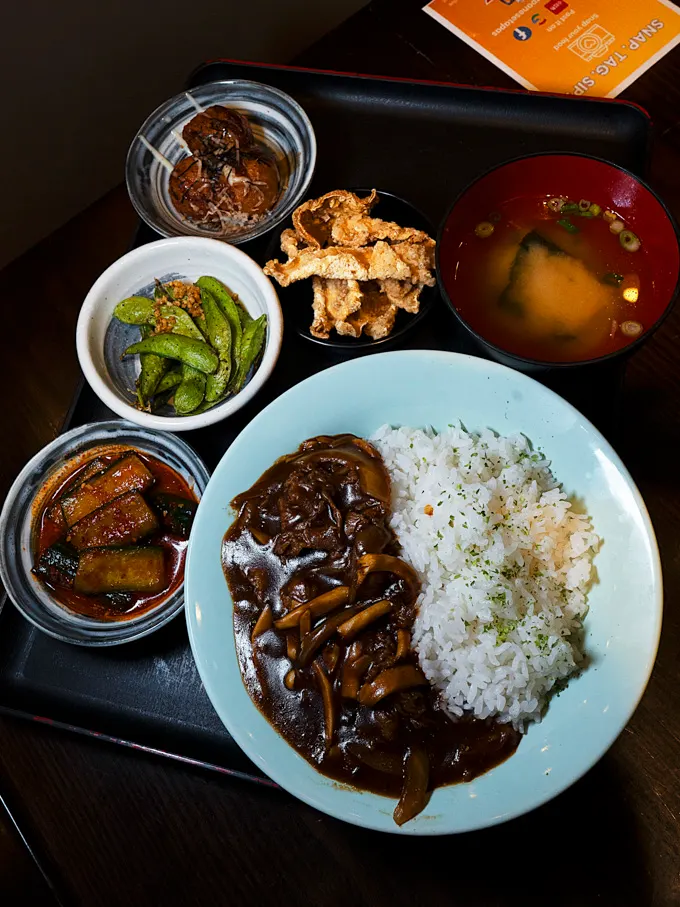 The Hayashi Demi Beef Rice featured sliced beef simmered in a dark sauce with onions and mushrooms, served over steamed rice. The beef was tender, and the sauce carried a balanced mix of savoury and mild sweetness that soaked into the rice.